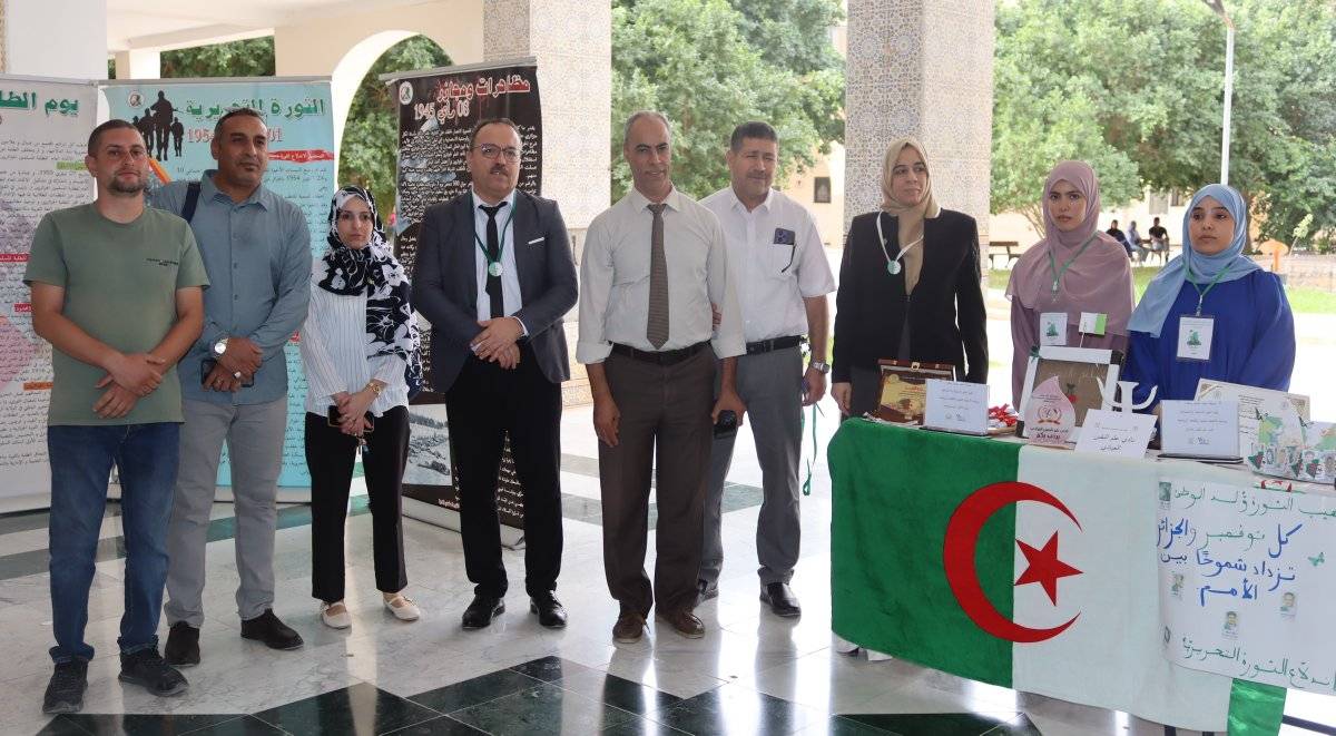 في إطار إحياء الذكرى الوطنية الحادية والسبعين لاندلاع الثورة التحريرية المجيدة، نظمت جامعة محمد خيضر – بسكرة، كلية العلوم الإنسانية والاجتماعية – قسم العلوم الإنسانية، بالتعاون مع المتحف الجهوي للولاية السادسة التاريخية العقيد محمد شعباني – بسكرة، ومخبر الدراسات التاريخية والحضارية للأوراس والصحراء الشرقية عبر العصور، وضمن مشروع البحث الوطني الموسوم بـ"الجزائر: التراث، التاريخ والمجتمع – مقاربة في المفهوم والمنهج ومساهمة في الحفاظ على التراث وبناء الذاكرة الوطنية والتنمية المحلية" وبالتنسيق مع مصلحة الانشطة العلمية والثقافية والرياضية ونوادي الكلية يوما دراسيا حضوريا وعن بعد تحت عنوان: "التوثيق للذاكرة الوطنية في الأبحاث العلمية حول المقاومة والثورة التحريرية الجزائرية، والإذاعة والتلفزيون من استرجاع السيادة إلى رهانات الممارسة الإعلامية في العصر الرقمي". استهلت فعاليات اليوم الدراسي بآيات بيّنات من الذكر الحكيم، يليها النشيد الوطني، ثم جاءت كلمة افتتاحية لرئيسة اليوم الدراسي الدكتورة نفطي وافية، تلتها كلمة الأستاذ الدكتور نبيل لحمر، ثم كلمة رئيسة قسم العلوم الإنسانية الدكتورة مغنية غرداين، أعقبتها كلمة نائب عميد كلية العلوم الإنسانية والاجتماعية، ثم كلمة مدير المتحف الجهوي للمجاهد بسكرة السيد كمال فرية كلمة السيد نائب مدير جامعة محمد خيضر بسكرة الذي أعلن الافتتاح الرسمي لأشغال اليوم الدراسي. عرف الملتقى تنظيم جلسات علمية حضورية وأخرى عن بعد، قدّم خلالها الباحثون سبع عشرة مداخلة علمية تنوعت محاورها بين الجوانب التاريخية والإعلامية والبحثية، مما أثرى النقاش وساهم في تعميق الفهم حول موضوع الذاكرة الوطنية والتوثيق الإعلامي للثورة التحريرية بعدها تم تكريم المجاهدين والحاضرين تقديرا لعطائهم وجهودهم في ترسيخ قيم الثورة في الأجيال الصاعدة. وبعد اختتام الجلسات العلمية، توجه المشاركون إلى المعارض التي أقيمت بالمناسبةوالتي شاركت فيها النوادي الطلابية ومصلحة الأنشطة العلمية والثقافية والرياضية وقد تضمنت هذه الاخيرة أعمالا تاريخية ومجسمات وكتبا ووثائق وصورا ونماذج توثق لمحطات من الثورة التحريرية المجيدة مما أضفى طابعا تربويا وتوعويا مميزا على الحدث وجسد تفاعل الطلبة مع الذاكرة الوطنية في أبهى صورها.
